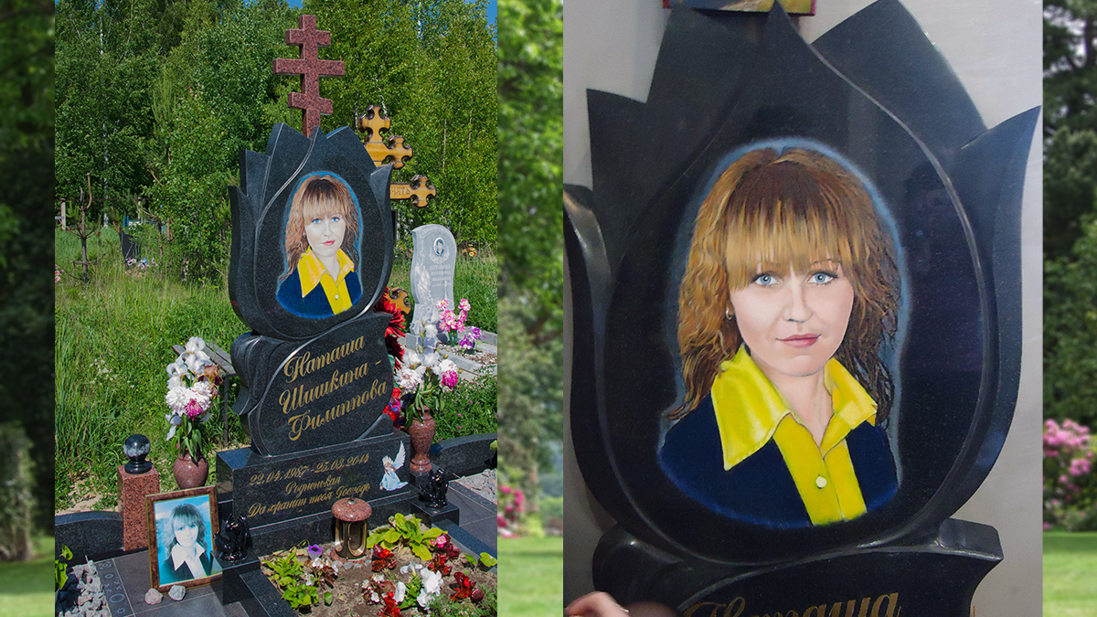 Портреты, надпись и оформление памятников покрываются специальным пластификатором зарубежного производства, благодаря этому камень не «плачет» в дождь и изображение не пропадает.