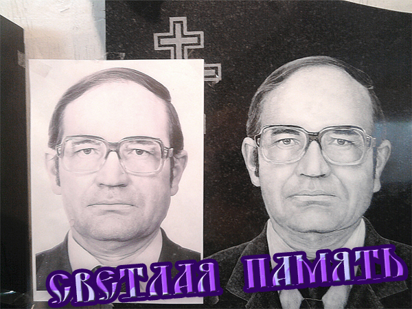 Художники перенесут фотографию на камень передав на камне дорогие Вам черты близкого человека. Так же возможен сложный монтаж из нескольких фото. Вы можете принести фотографию, где только лицо ушедшего человека, и по Вашему желанию, мы оденем его в любую одежду, сделаем фон леса, гор, реки, или того, что Вы пожелаете.